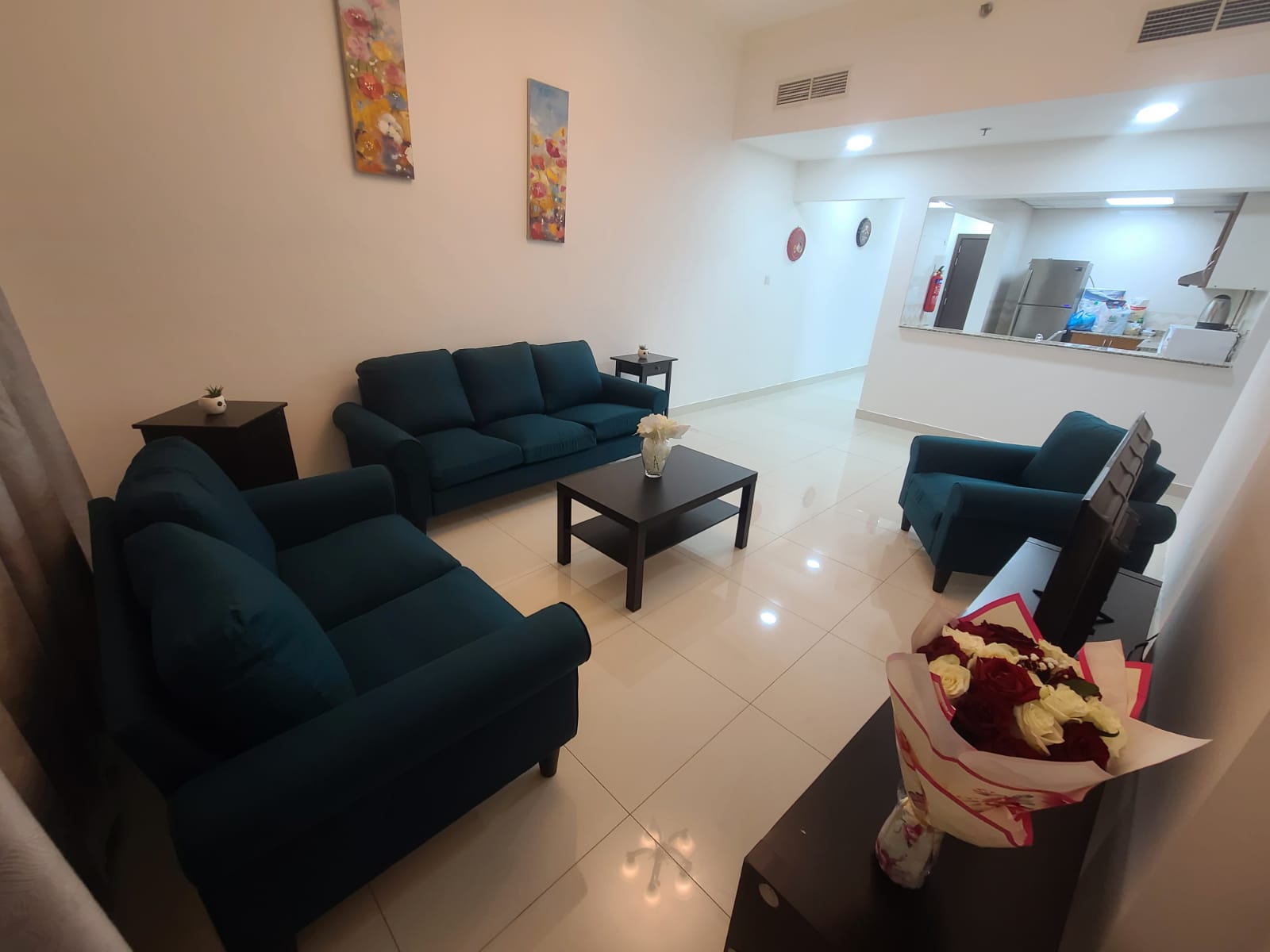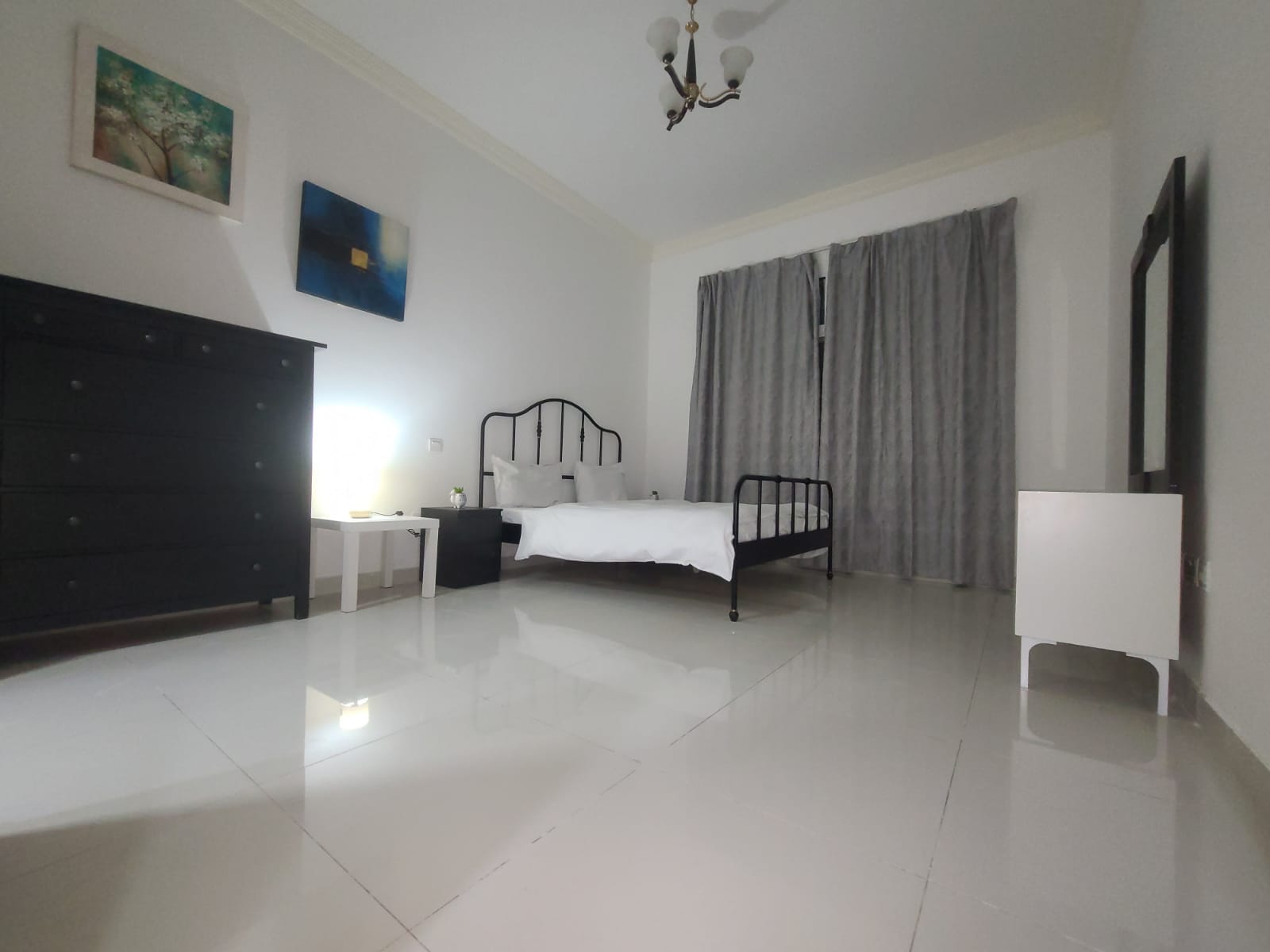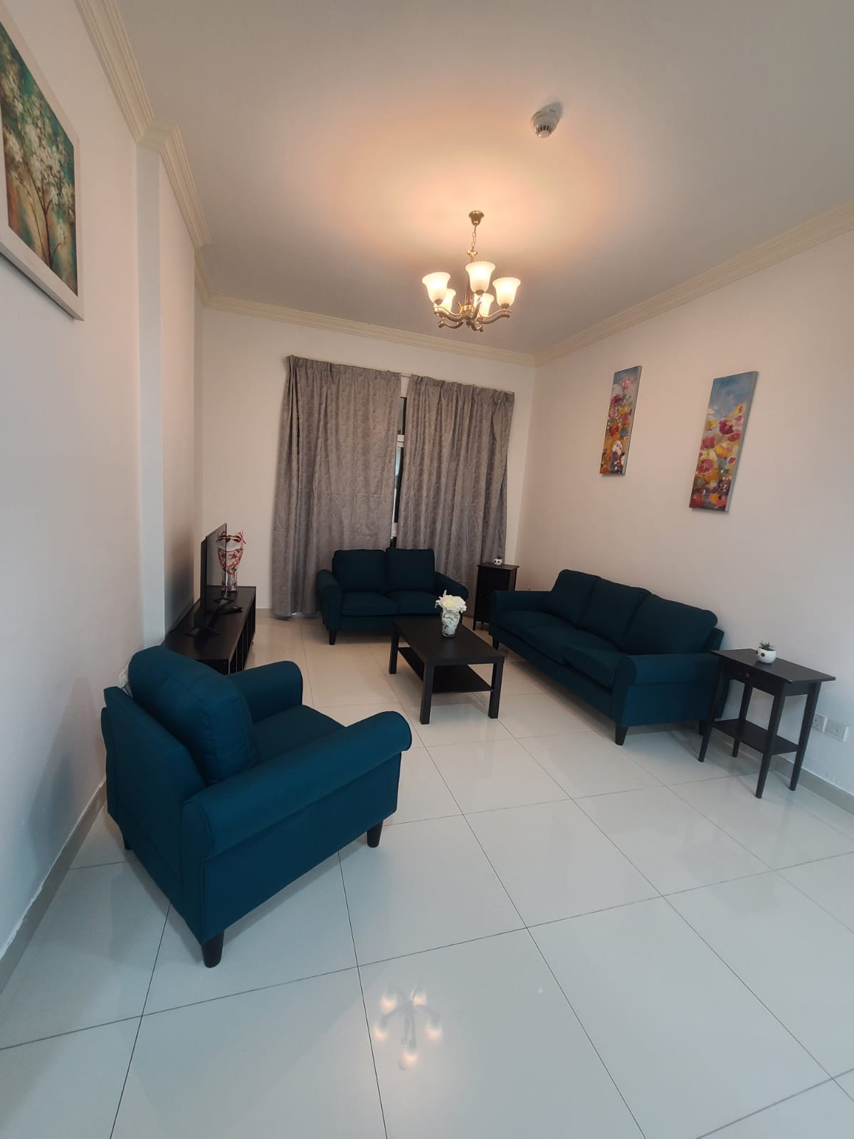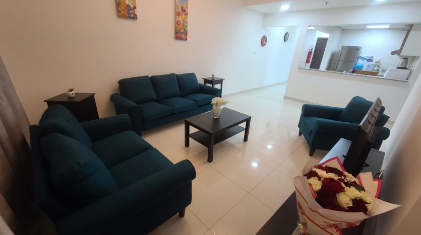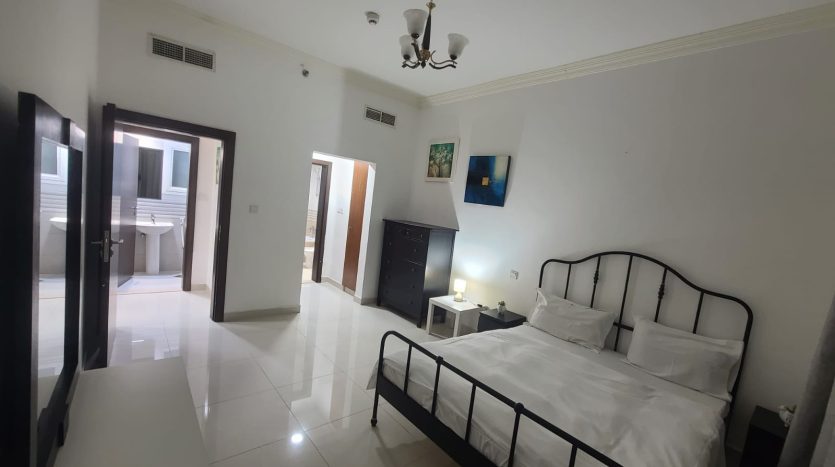 This elegant 1-bedroom apartment in Al Sharafi 2, Al Quoz is ideal for families needing a functional and private space. It includes an openable window, attached bathroom, 2-door cupboard, fridge, and 43-inch TV.