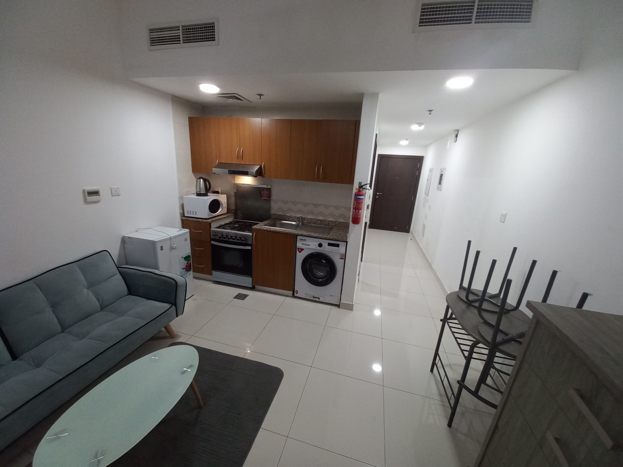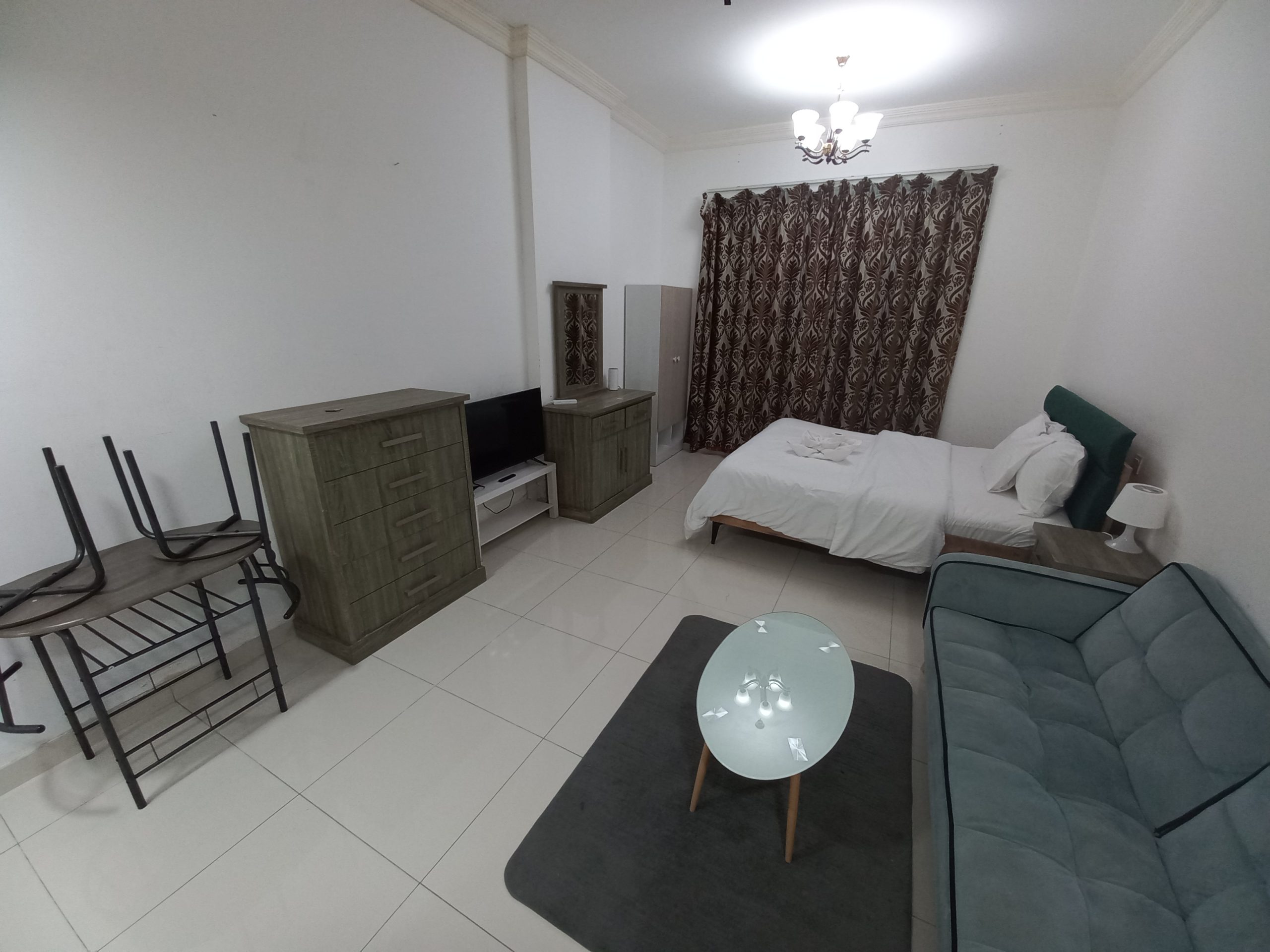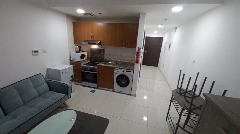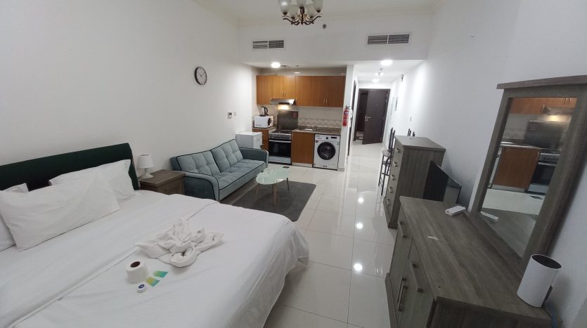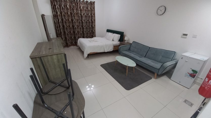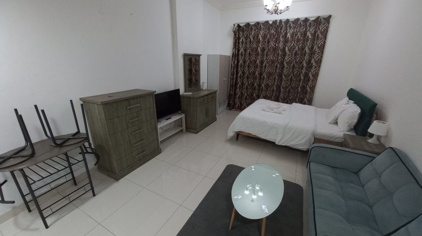 This cozy studio apartment in Al Sharafi 2 offers all the essentials for family life. With an openable window, attached bathroom, 2-door cupboard, fridge (90–120L), and 43” TV, it’s ready to move in.