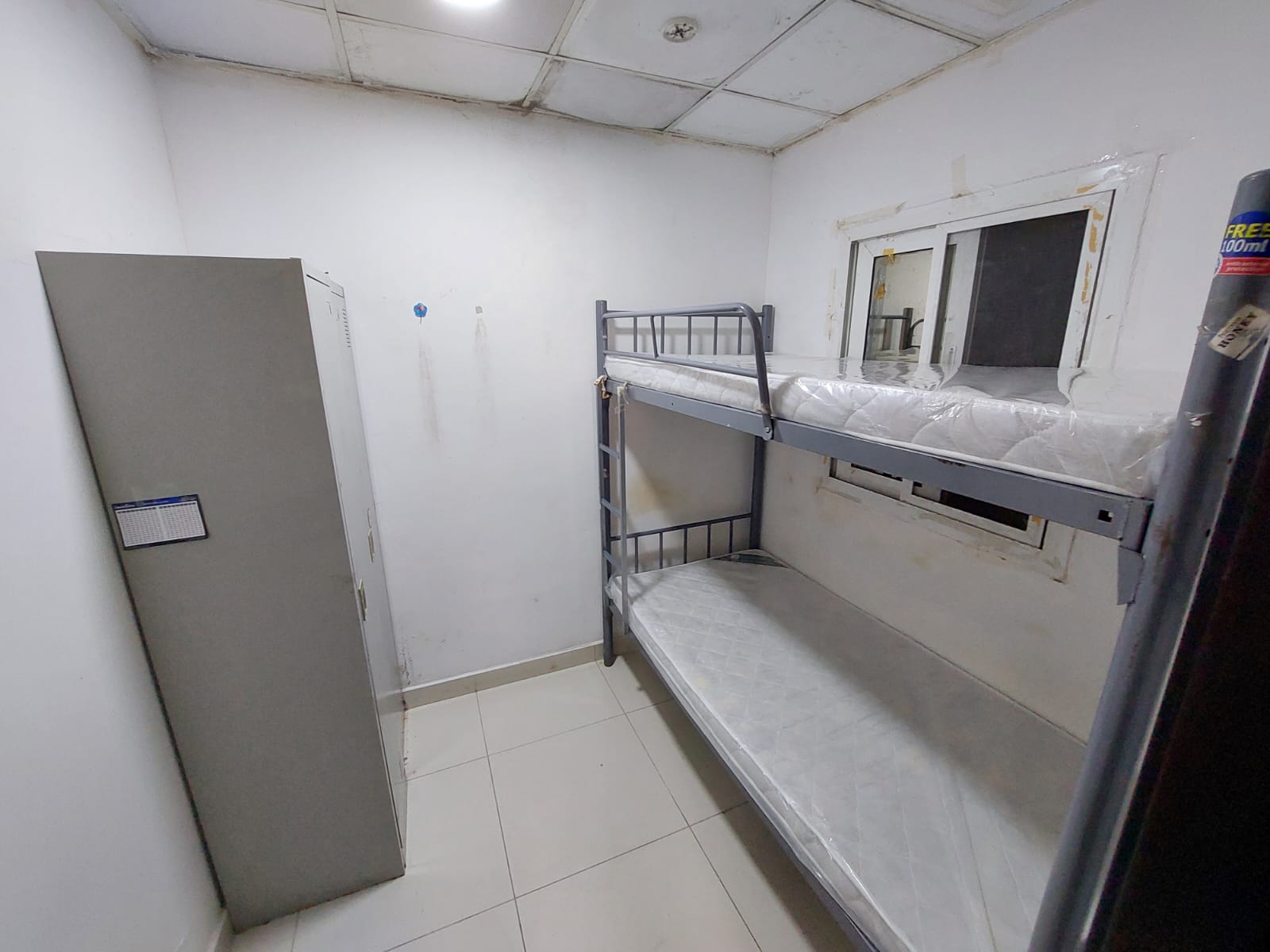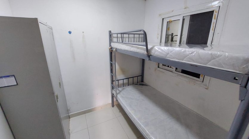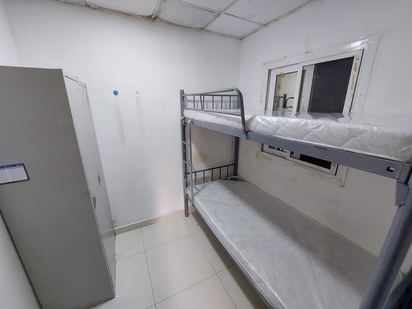 This compact maid room for males in Al Qusais Bin Daher features a small openable window f ...