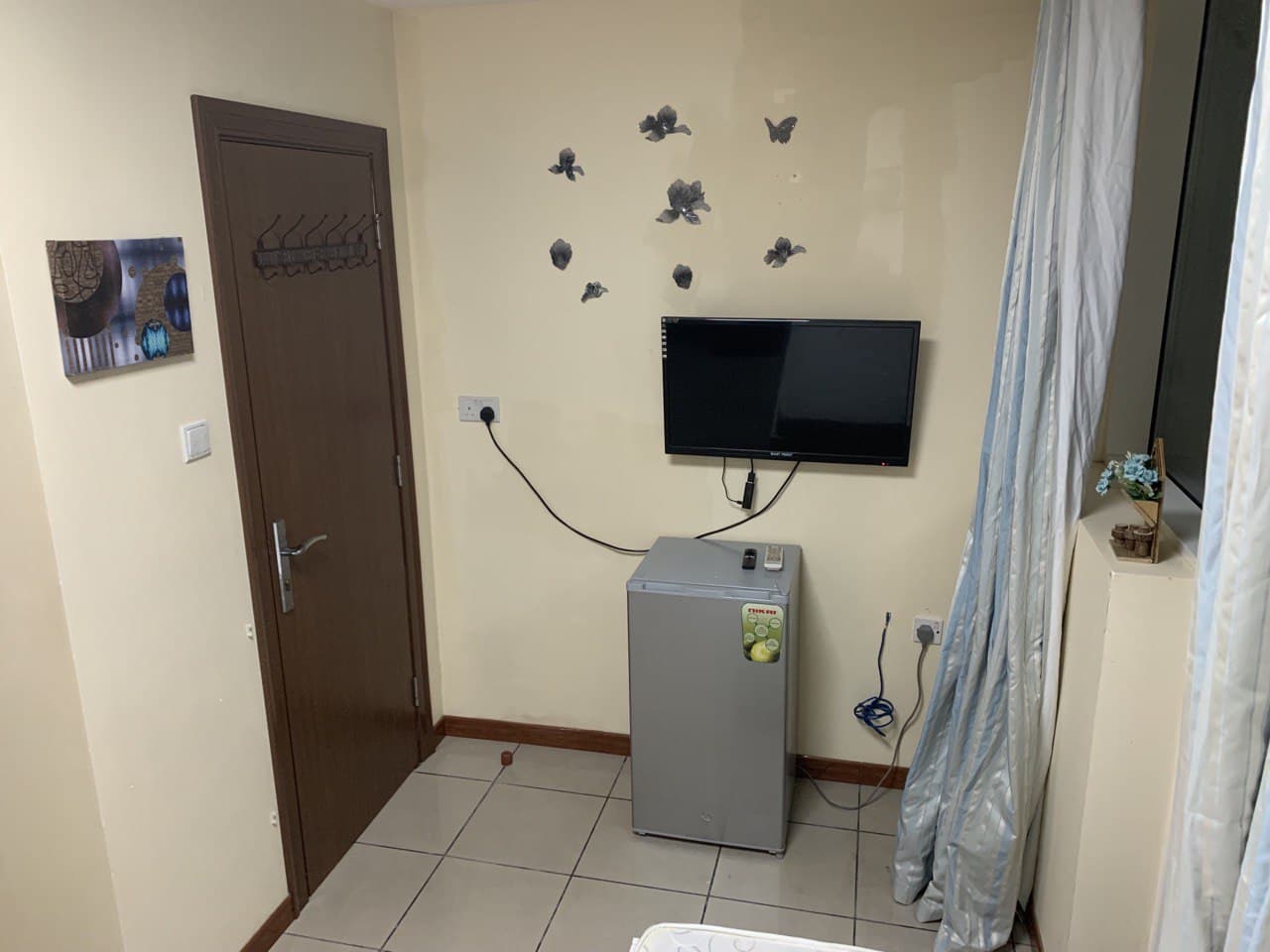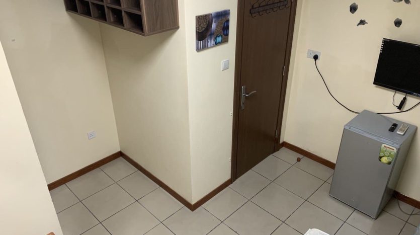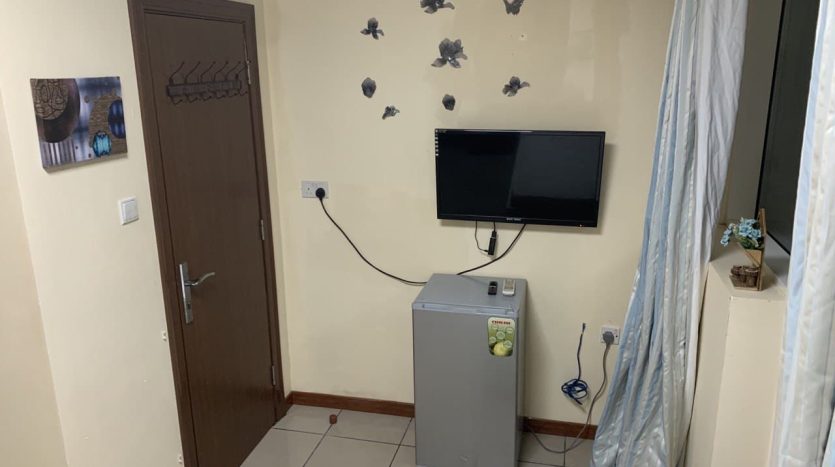 • Comes furnished with a 1-door cupboard, 32-inch TV, and 40–60 liter fridge