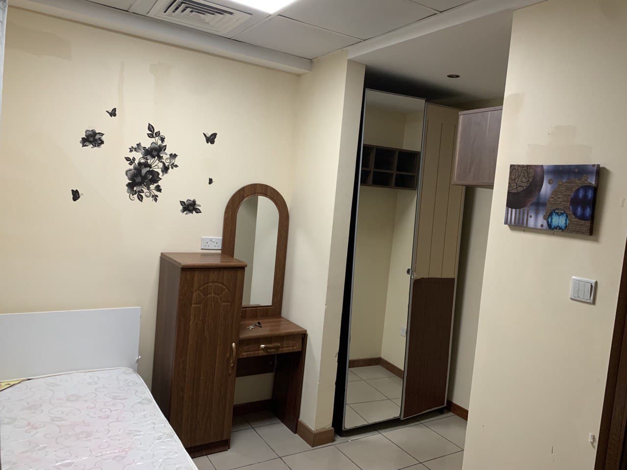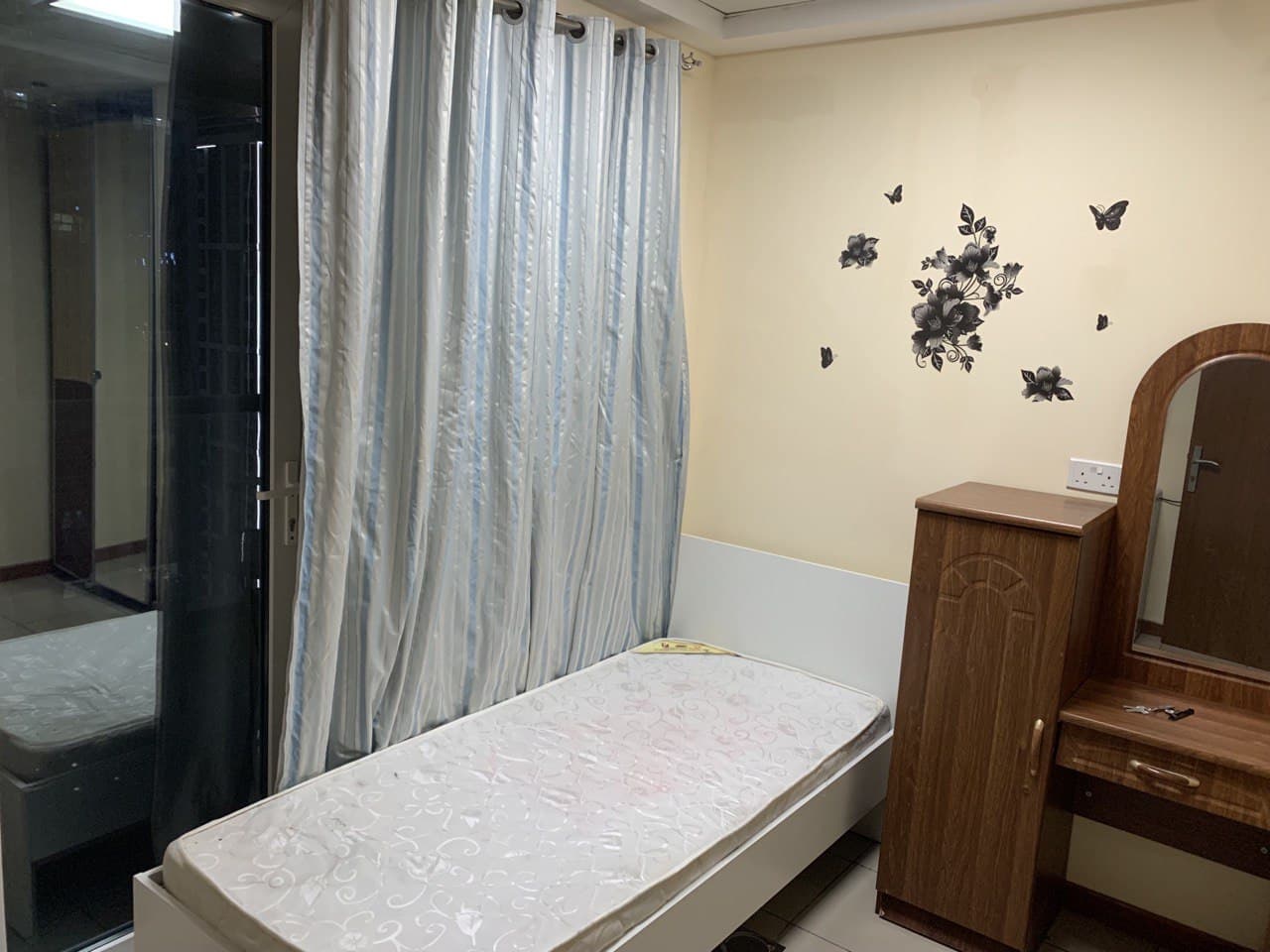 a picture includes a Bed and wardrobe in a Private room for rent in Dubai Marina – For Males Only