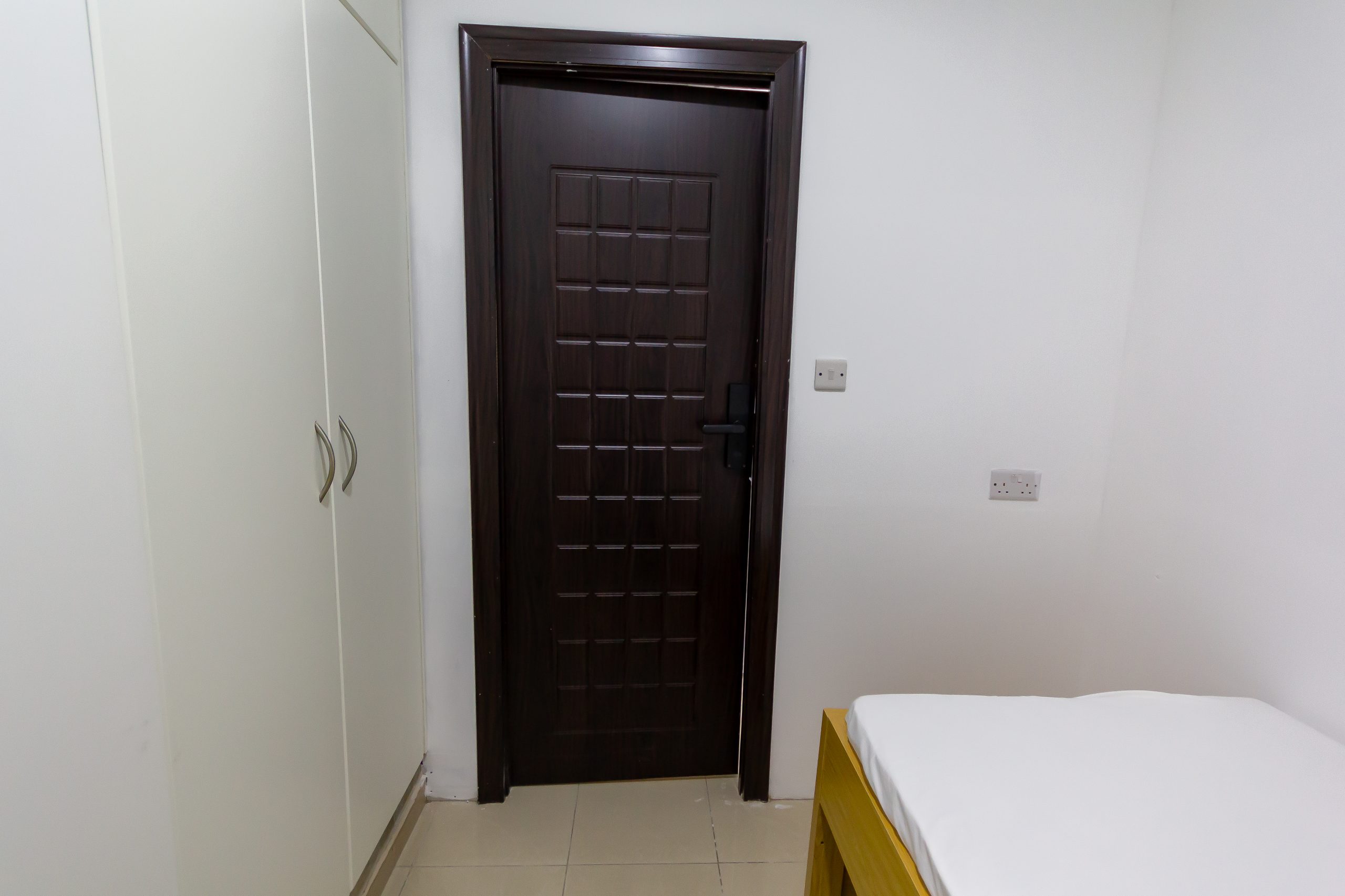 - Comes furnished with a bed and cupboard