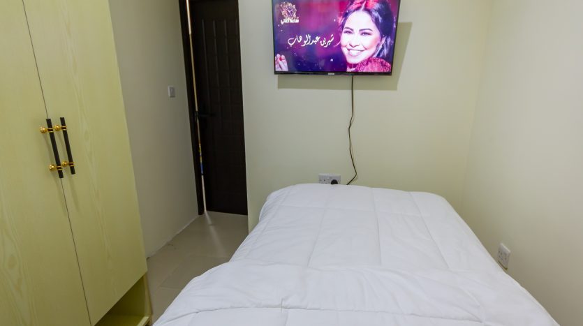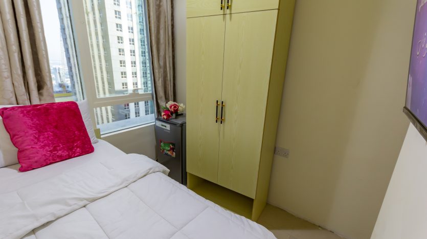 a picture includes a Bed and wardrobe in a Private room for rent in Dubai Marina – For Males Only