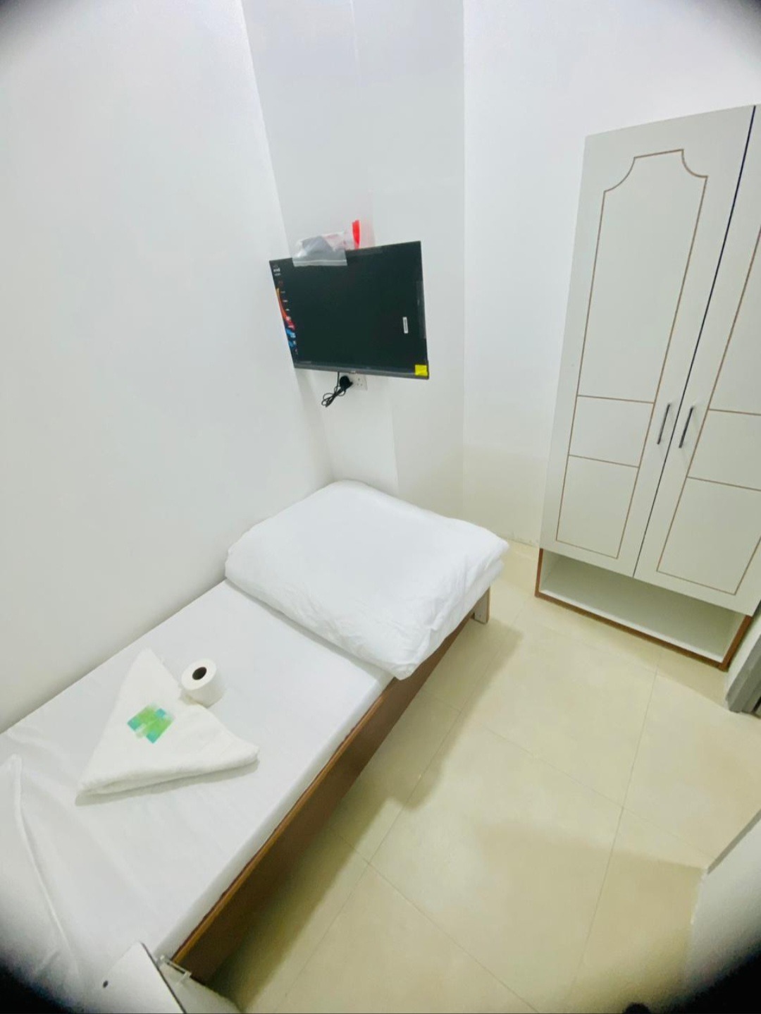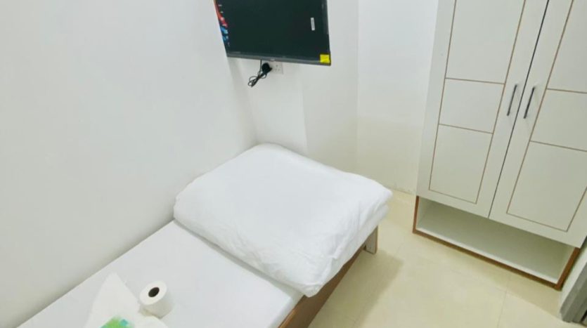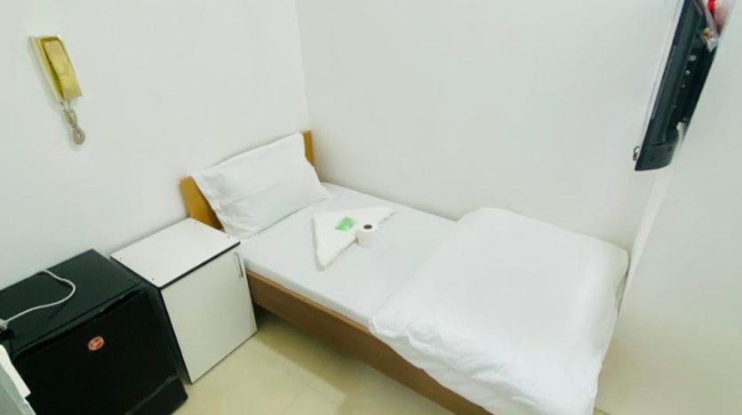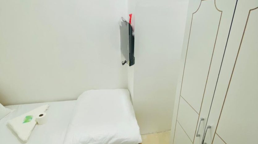 - Furnished with a 2-door cupboard, personal fridge (40–60L), and a 32″ TV
