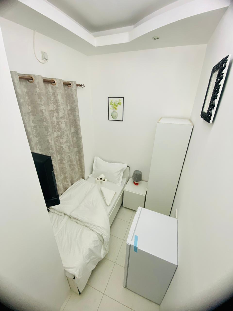 An affordable small room in Bin Daher Al Qusais with a fixed window is now available , suitable for mixed tenants.