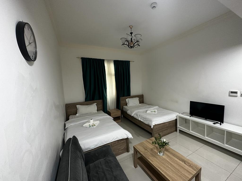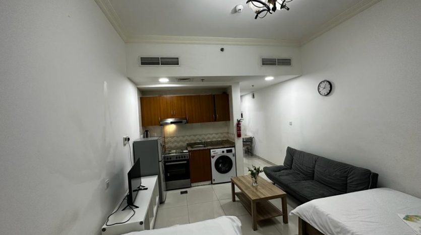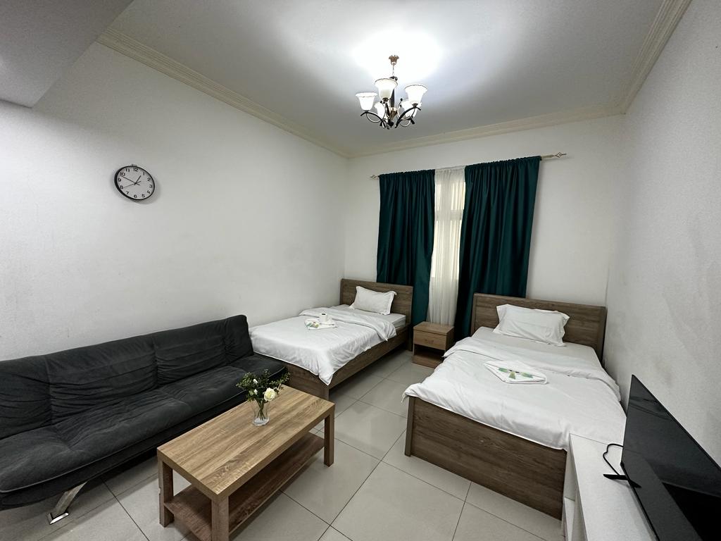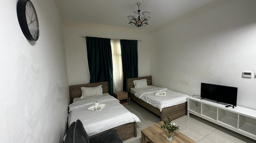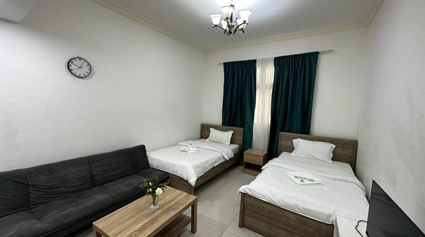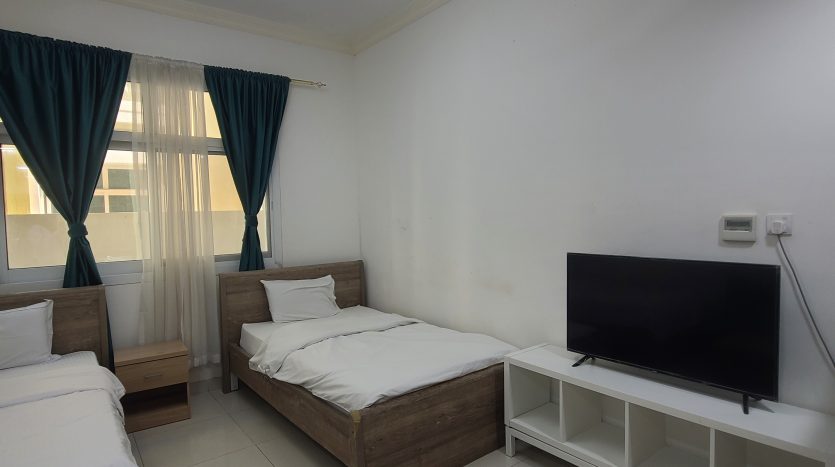 Ideal for small families, this studio apartment in Al Sharafi 2 combines privacy with comfort. The unit comes with a private bathroom, a built-in cupboard, a 90-120 liter fridge, and a 40-inch TV—making it a perfect blend of functionality and affordability.